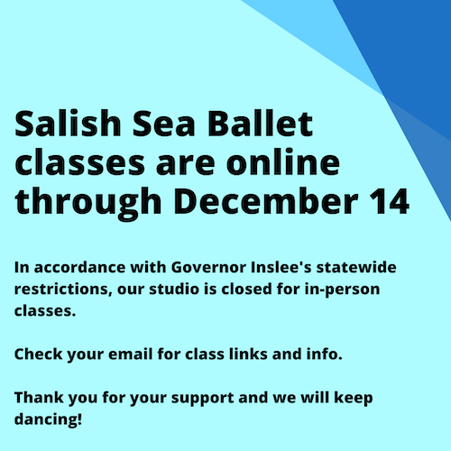 Salish Sea Ballet begins its first Fall Session on September 8th, 2025. We operate on an academic calendar schedule (September-June) with a special Summer Session. Ballet is a year-round artistic sport. Your dancer will achieve the most growth in their skills if they can dance with us the entire year. Many of our classes will fill but please put your dancer on our waitlist for their class if you do not get a place initially. We try our best to give everyone the opportunity to dance. Contact us for more details. Come dance with us!